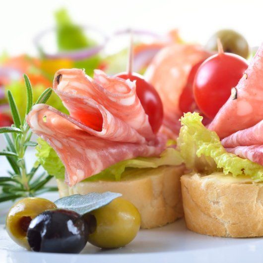 Salami Soppressa & italienischer Landschinken mit allgäuer Weichkäse & gefüllter Cocktailtomate